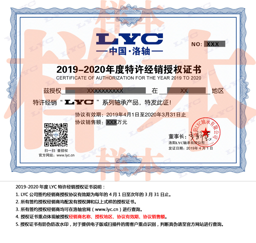 3. 所有簽約授權經(jīng)銷商均可在洛軸官網廠體(www.lyc.cn)進(jìn)行這電查詢。