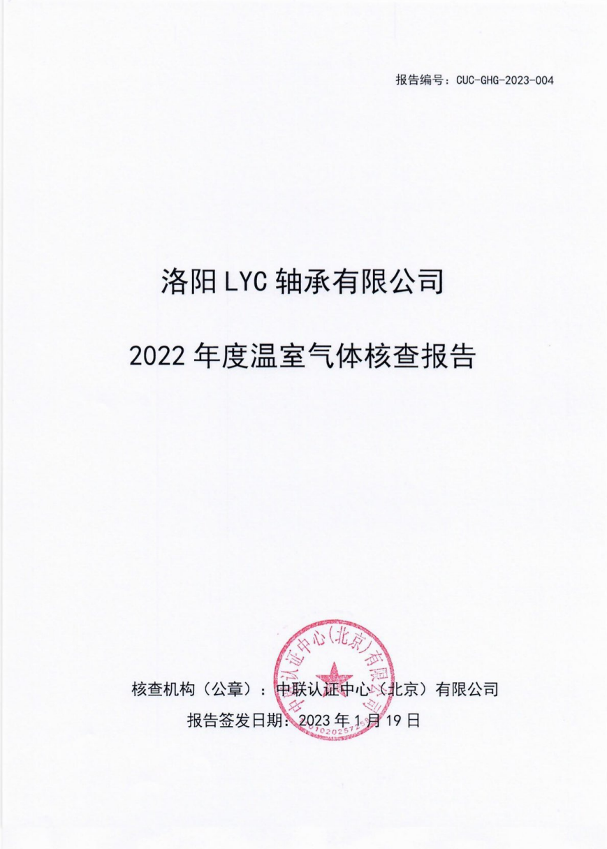 洛陽LYC軸承有限公司2022年度溫室氣體核查報工個告