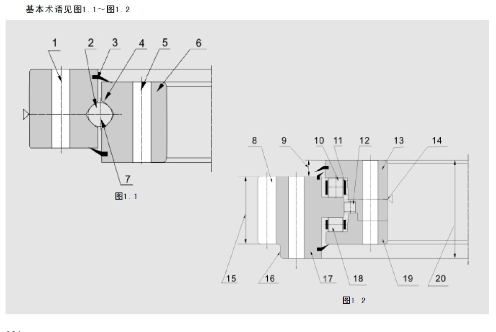 四點接觸球軸承,見圖1.3~圖1.5;